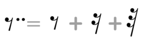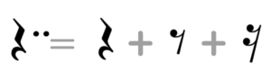 複付点休符は、「もとの休符の長さ」+「その休符の半分の長さ」+「さらに休符の半分の長さ」です。